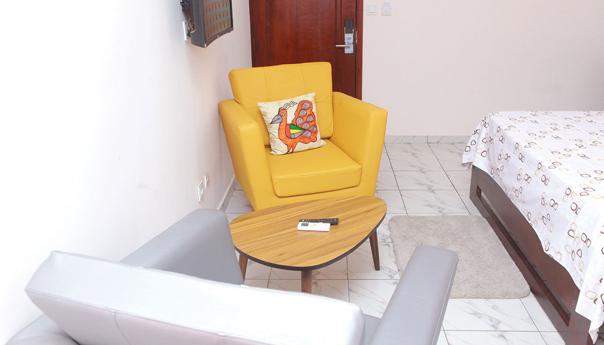 Chambre simple: Confort et Sécurité, équipements disponibles TV – SPLIT – WIFI – EAU CHAUDE – CANAPÉ
