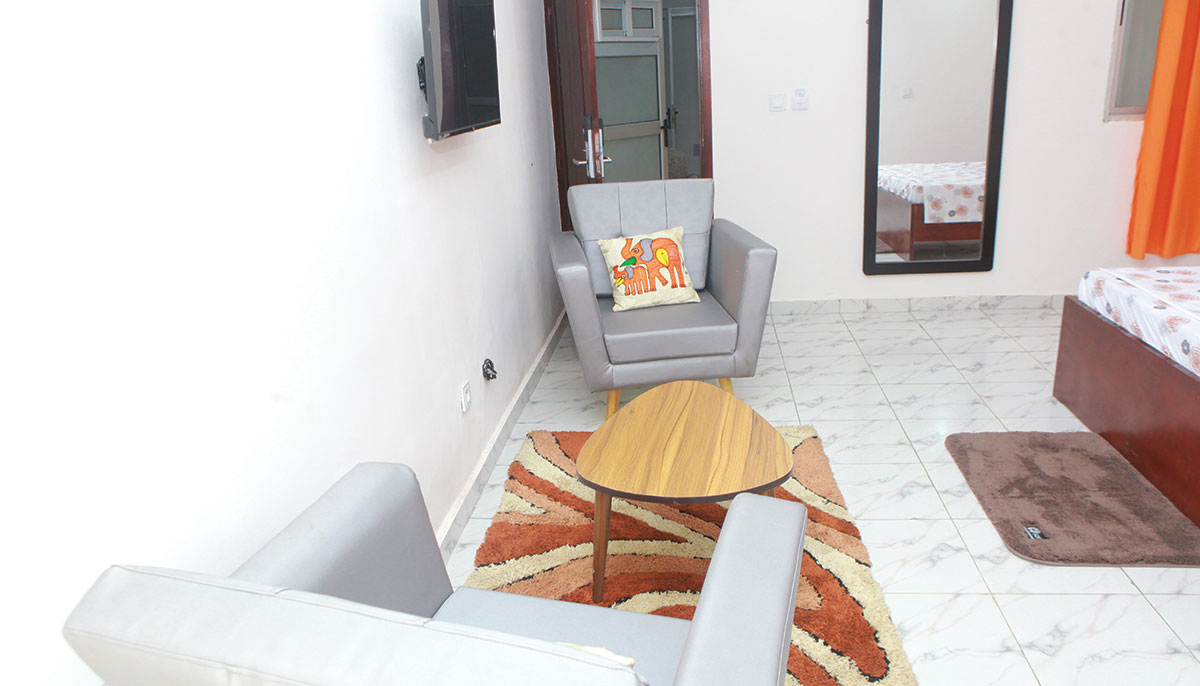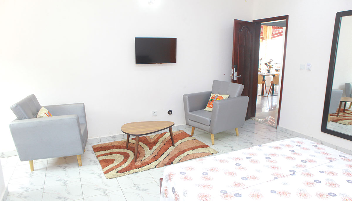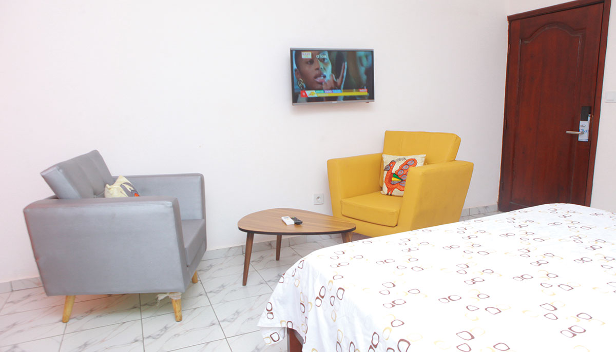 Mini Suite: Confort et Sécurité, équipements disponibles TV – SPLIT – WIFI – EAU CHAUDE – MINI SALON – MINI REFRIGERATEUR